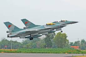 Sedangkan pesawat tempur jenis F-16 produksi AS juga tak mau kalah, pesawat pengebom rudal jarak jauh ini melakukan manuver berputar terbalik kemudian berpencar.